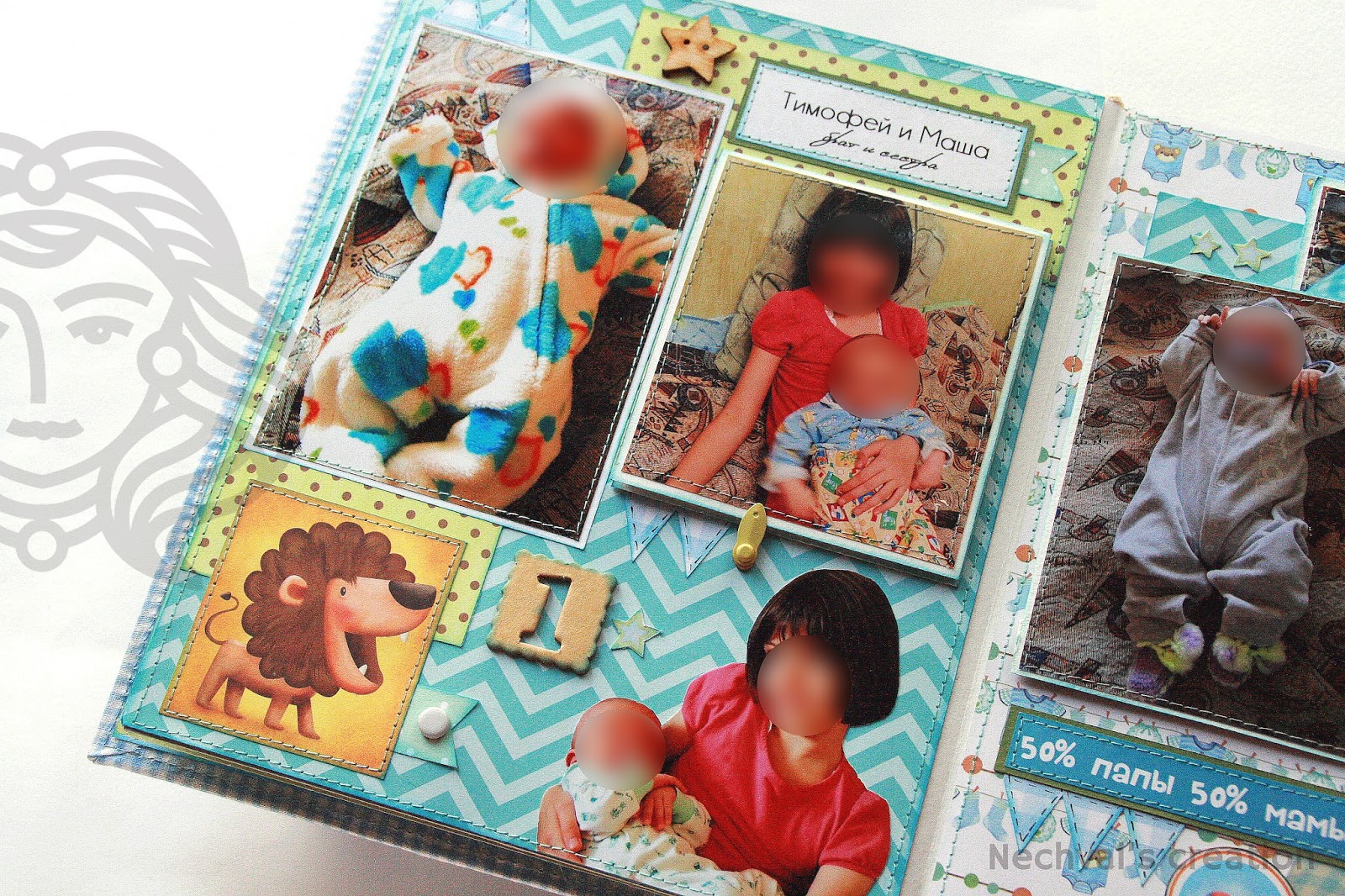 Альбом размером 20х25см, в нем 7 листов и аж 97 фото! Не первый раз в альбомах применяю вырезалочки за фотографий, очень мне нравится этот прием.